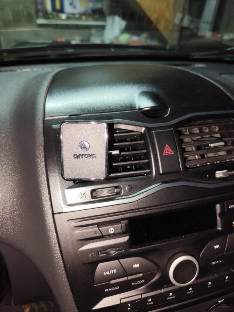 Само крепление на вентиляционную решетку - достаточно удобный способ, позволяющий разместить смартфон под рукой и с хорошим визуальным обзором. Чтобы горячий воздух из дефлектора не повредил смартфон, заслонку этой секции, как правило, перекрывают. Держатель устанавливается на вторую снизу лопасть решетки. При этом, он должен быть вставлен внутрь до конца, чтобы антивибрационная пластина уперлась в дефлектор. С помощью вращающегося "барашка" затягивается зажим крепления держателя в воздуховоде. В отличие от дешевых вариантов держателей в вентиляцию, которые крепятся только на упругости пластика, Arroys Vent One держится очень надежно и не вибрирует при езде. Он точно не вынется из решетки сам по себе, когда вы захотите снять телефон с магнитной "головы".