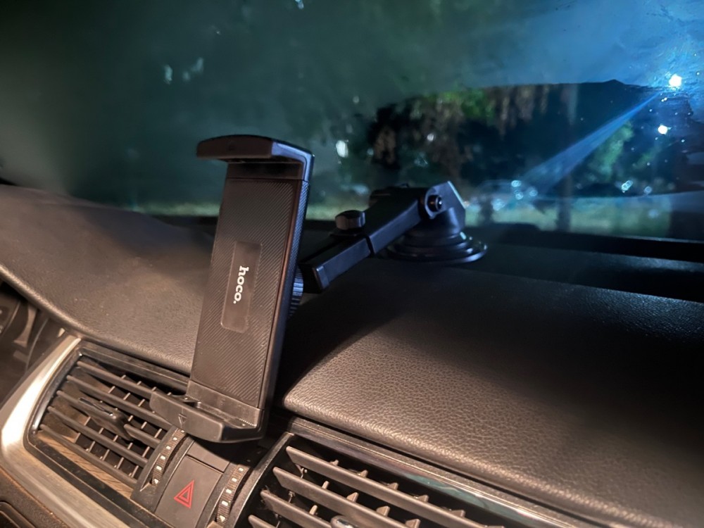 Hoco CA120 Prospering center console car holder for tablets - держатель для планшета в автомобиль. Устанавливается на торпедо или стекло с помощью вакуумной присоски с липкой поверхностью. Отличается выдвижной штангой с гибкой настройкой положения в пространстве