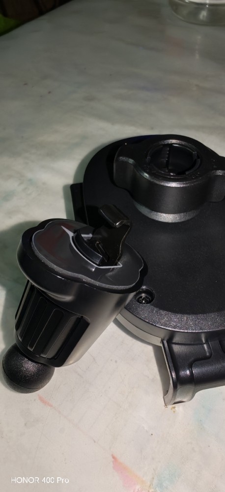 Захват происходит автоматически при касании тыльной стороной смартфона овальной клавиши на держателе. Нижняя полка полностью исключает выпадание смартфона, а вырез на ней открывает доступ к зарядному порту