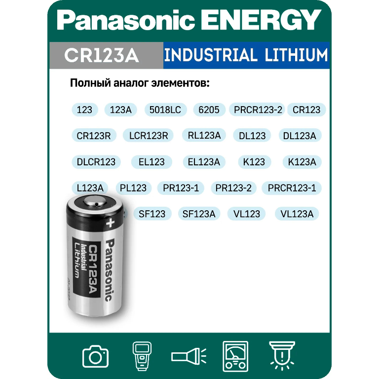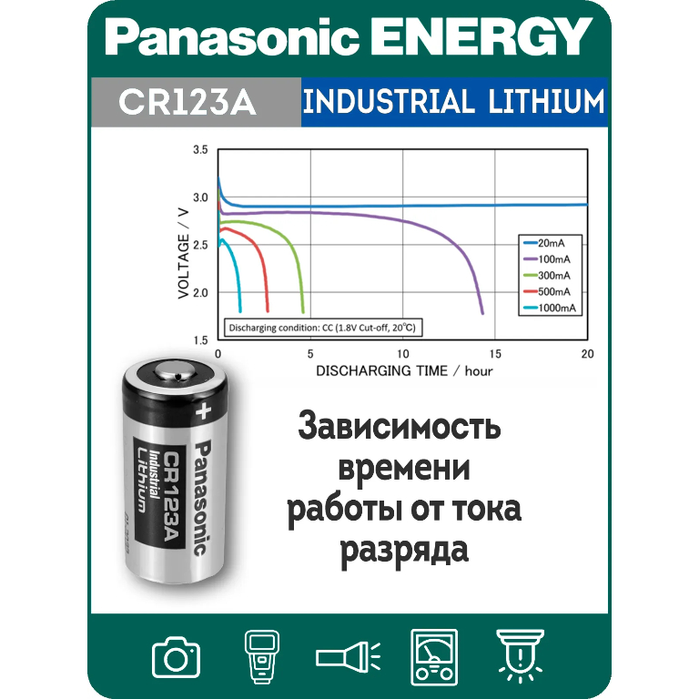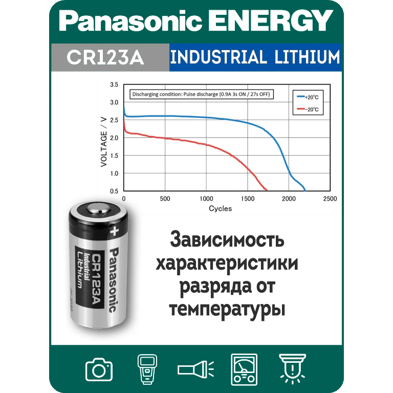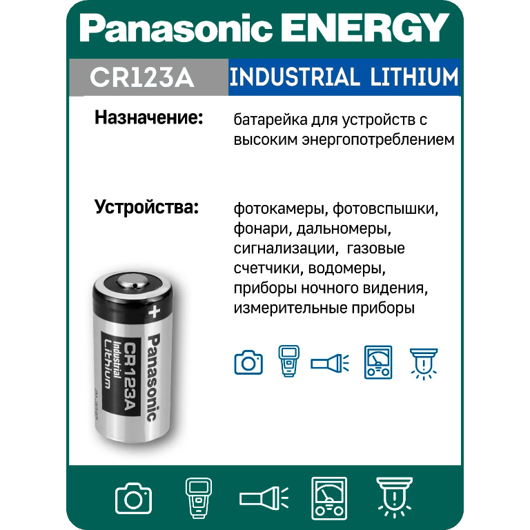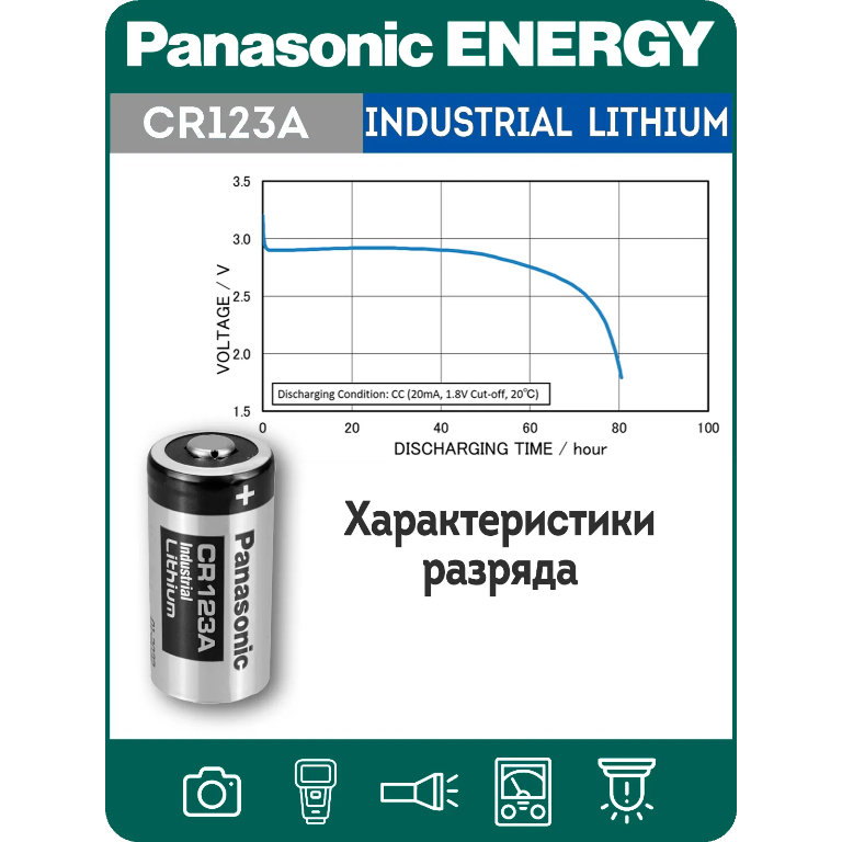 Технические характеристики батарейки на 3 вольта Panasonic CR123A