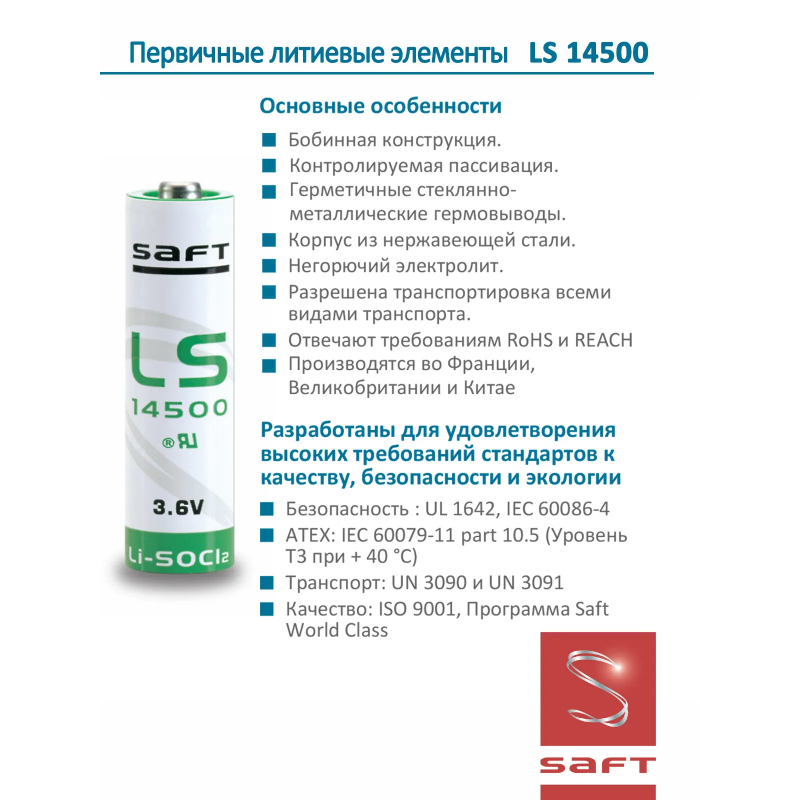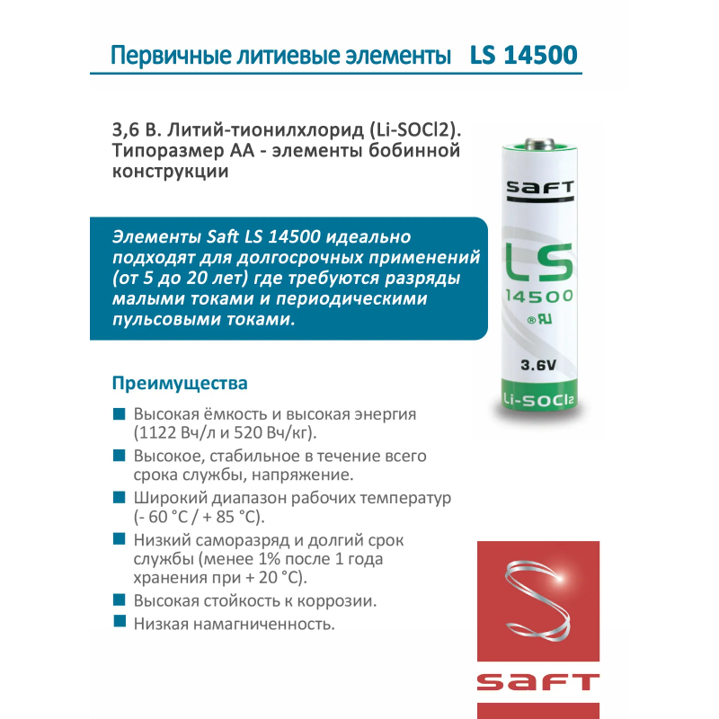 Долгий срок службы и низкий саморазряд - достигаются благодаря тоненькой изолирующей пленке хлорида лития, образующейся на поверхности металлического литиевого электрода еще в процессе сборки элемента питания как только литий вступает в контакт с тионилхлоридом. Данная пленка прерывает взаимодействие реагентов и останавливает реакцию, тем самым существенно снижая ток саморазряда. Это явление называется пассивацией литиевой батареи. Минусом явления пассивации является сниженное напряжение на клеммах батарейки при подключении к нагрузке. Номинальное напряжение у Li/SOCl2 элементов питания при стандартном токе разряда должно быть порядка 3,6 В, а из-за изолирующей пленки оно может понизиться до 2,3-2,7 Для повышения напряжения до нормального уровня требуется обязательная депассивация литий-тионилхлоридного элемента питания с помощью подключения к его клеммам сопротивления (резистора) на определенное время. Типоразмер 14500 нужно подключить резистор с минимальным сопротивлением 330 ОМ, нагрузка, необходимая для восстановления после года хранения 30 mA в течении 15 минут. После успешной депассивации напряжение на клеммах батареи должно подняться выше 3 В.