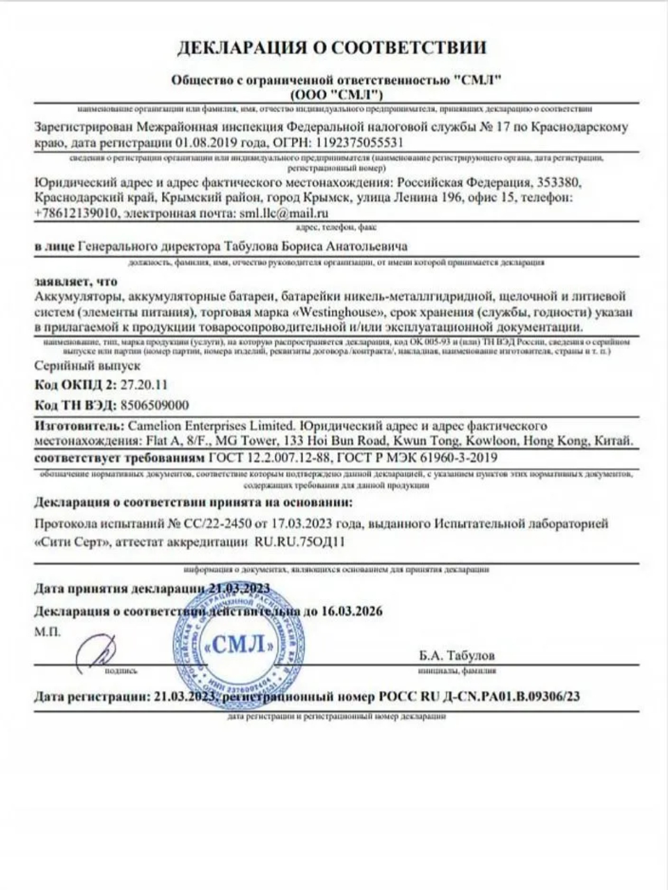 - Срок хранения 10 лет: низкий саморазряд 1% в год гарантирует увеличенный срок хранения батареек Westinghouse CR123A — до 10 лет