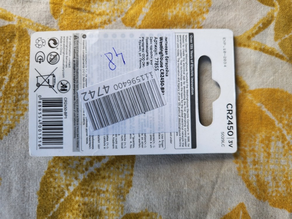 Будучи компанией, которая заботится об окружающей среде, Westinghouse производит батарейки-таблетки CR2450 не содержащие кадмия, ртути и свинца, чтобы у вас была возможность приобретать экологически чистый и безопасный продукт