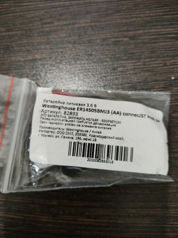 батарейка литиевая 3.6 В Westinghouse ER 14505BMJ3 (AA) connector JST PHR-2P