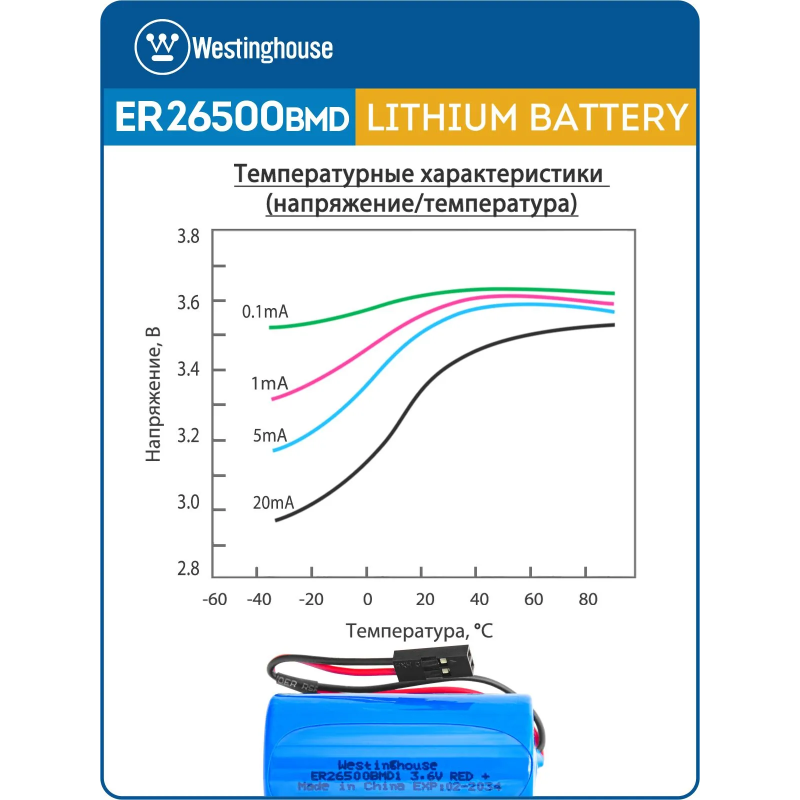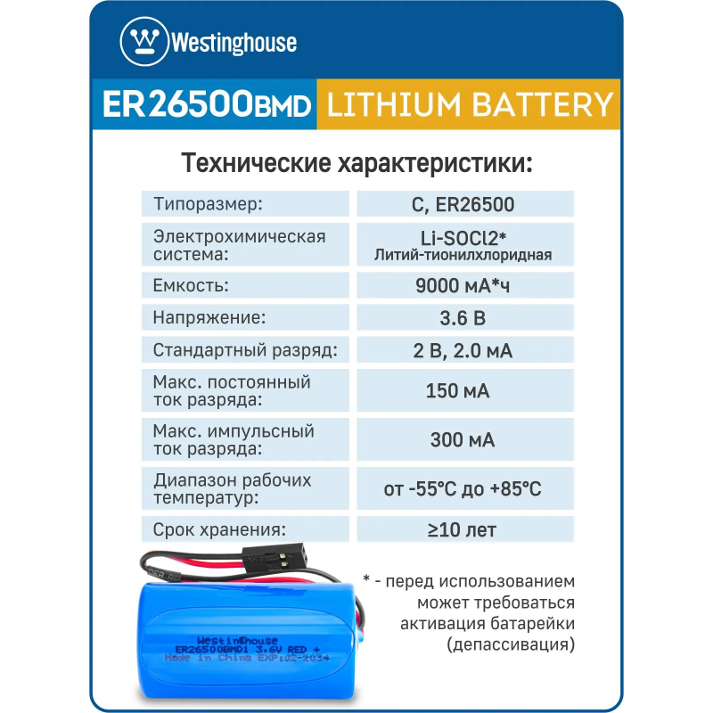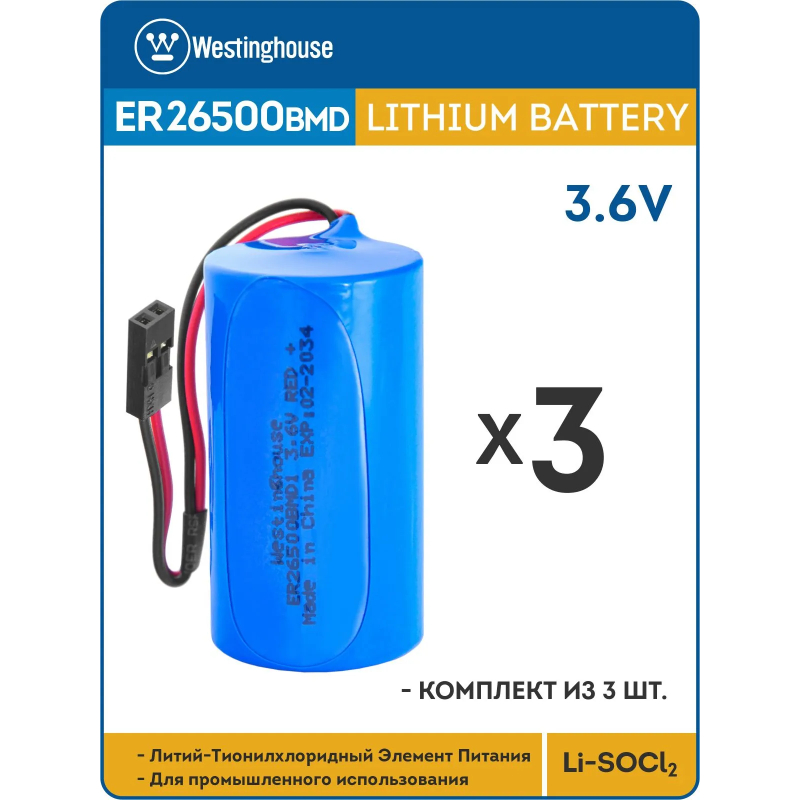 литиевые батарейки Westinghouse ER 26500BMD1 (C) connector 3шт.