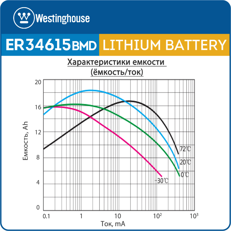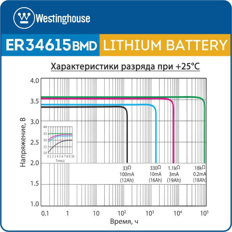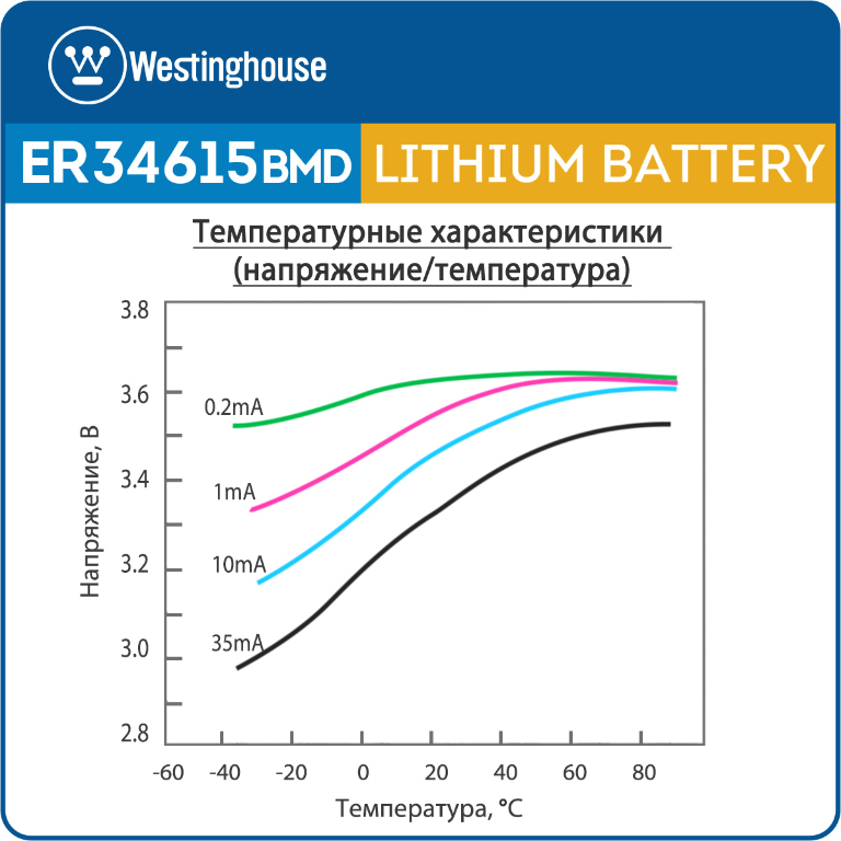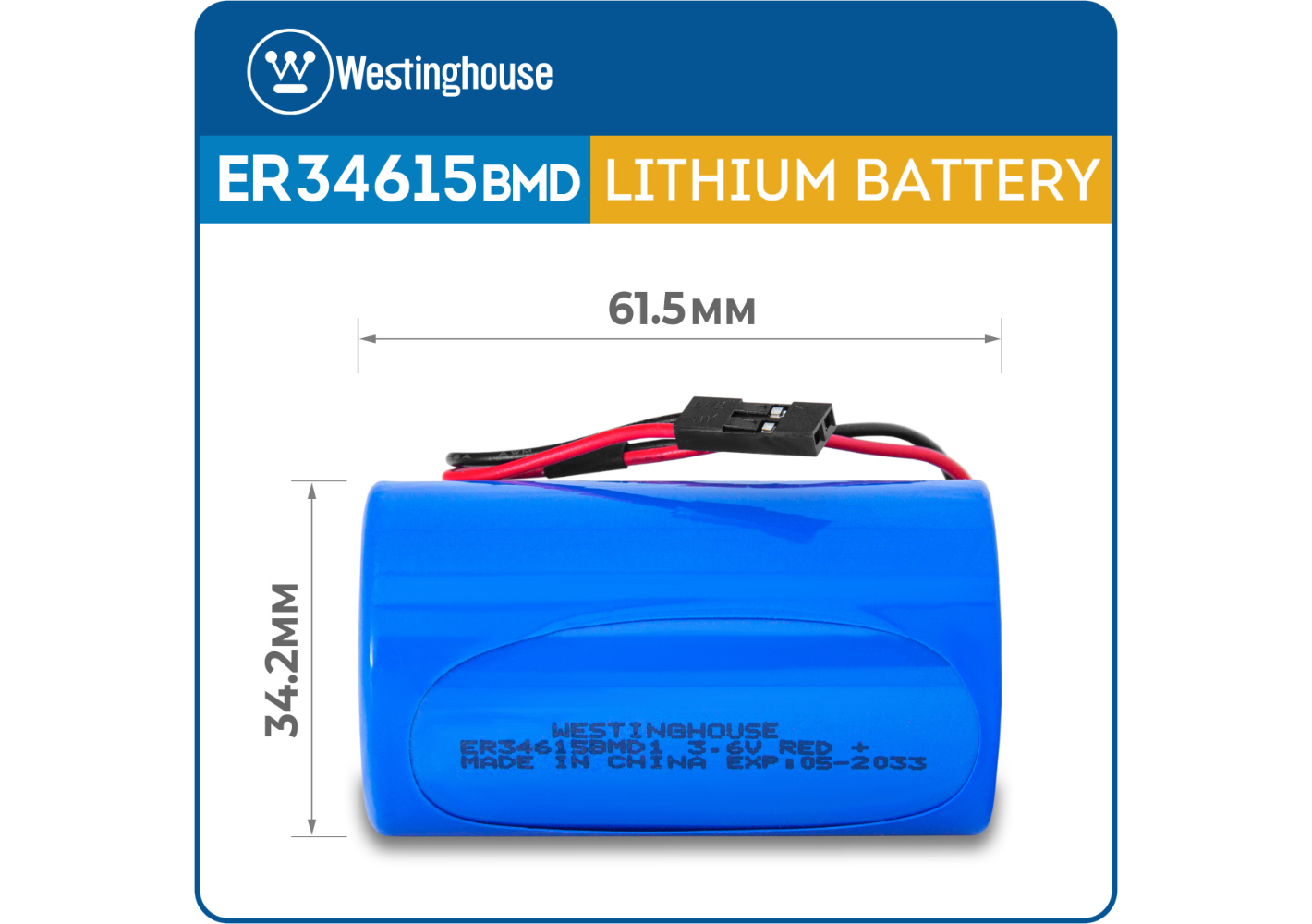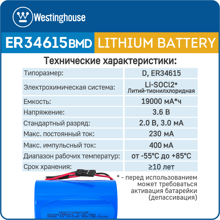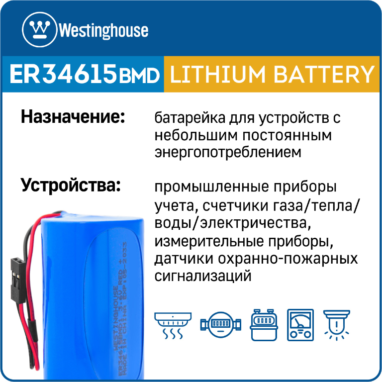 батарейка 3.6 В с коннектором Dupont 2,54 (BLS-2) Westinghouse ER 34615BMD1 (D) connector