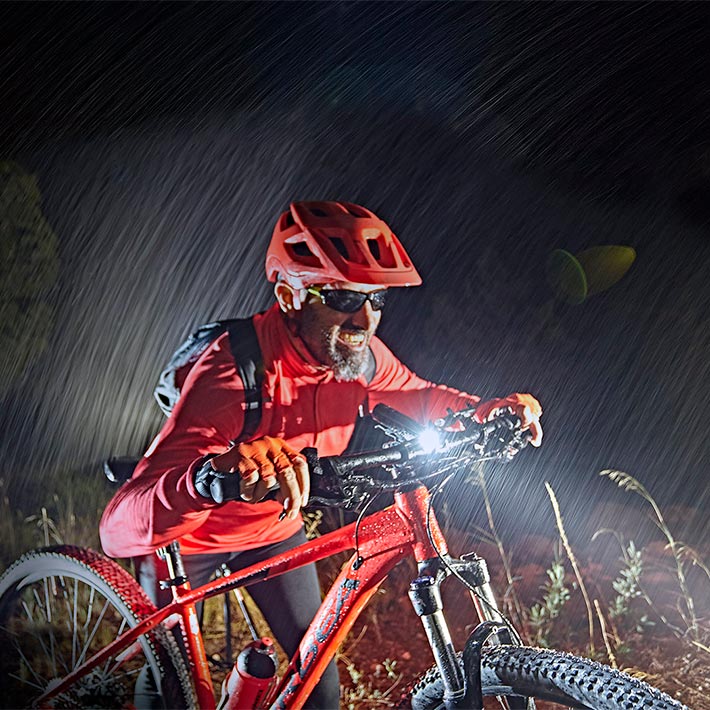 Велосипедный фонарь Fenix BC26R идёт в комплекте с фирменным аккумулятором большой ёмкости ARB-L21-5000, типоразмера 21700. Внушительного запаса энергии хватает на 65 часов автономной работы. Если возникнет необходимость заменить аккумулятор во время езды, то это можно легко сделать благодаря съёмному форм-фактору батареи