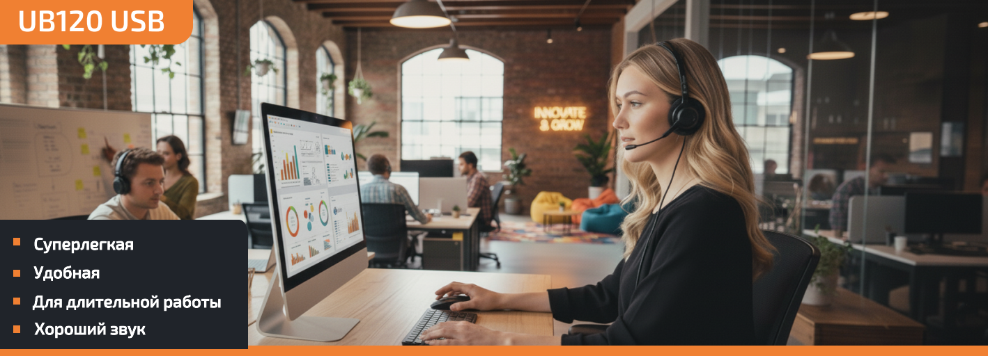 Легкие, удобные, очень популярные Наушники с микрофоном  Accutone UB120 USB