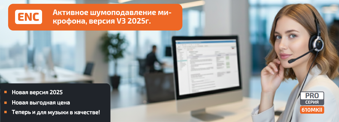 Активное шумоподавление микрофона в профессиональной гарнитуре основано на специализированном чипсете DSP- процессоре. Технология шумоподавления ослабляет нежелательные шумы в 1000 - 3000 раз (30-35 дБ). Голос человека создает уровень шума около 50 dB на расстоянии 1 метр. Гарнитура с активным шумоподавлением снижает этот уровень более, чем в 1000 раз, оставляя лишь шум, сравнимый с тихим шелестом листвы (15 дБ). Человек на другом конце канала связи не сможет распознать голос вашего коллеги на соседнем месте и, тем более, разобрать что он говорит. В профессиональных гарнитурах с обычным пассивным шумоподавлением посторонние звуки ослабляются в 10 - 30 раз (10 – 15 дБ). На практике это означает, что собеседник в паузах вашей речи с трудом, но сможет понять, что говорит ваш коллега на соседнем рабочем месте. Как минимум, присутствие голоса, даже неразборчивого, будет.